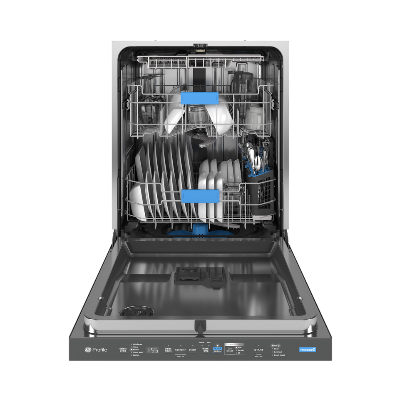 The GE Profile PDT795SYVFS is a premium 24″ top-control dishwasher combining smart connectivity, whisper-quiet performance, and advanced hygiene features. With its UltraFresh system, stainless steel tub, and multi-rack cleaning, it delivers thorough results while keeping your kitchen fresh.